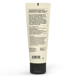 Introducing our All Natural Body Sunscreen with SPF 30. Thin and easy to spread across large surface areas of the body, this 100% natural physical / mineral sunscreen uses only non-nano zinc oxide to safely and naturally protect the skin from UVA & UVB rays.