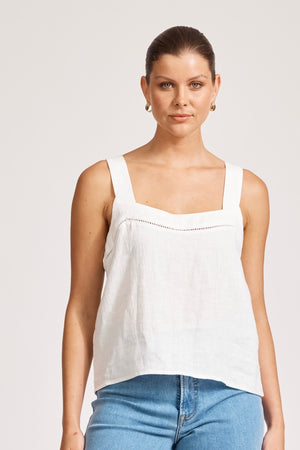 Introducing the Miramar Tank, a beautiful linen crop top that complements your favourite printed wide-leg pants for a stylish and easygoing outfit. Ideal for spring and summer, it’s perfect for work or parties.