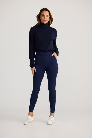 SALE - Pilot Ponte Pants - Navy Slim Leg