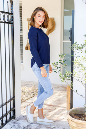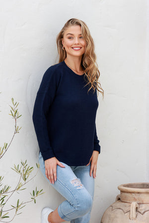 Our most popular and loved knit jumper. This high round neck jumper in a popcorn cotton knit. A gorgeous texture in an easy to wear style flattering all body shapes. A perfect knitwear weight for Autumn, Winter and Spring.
