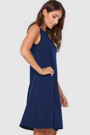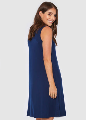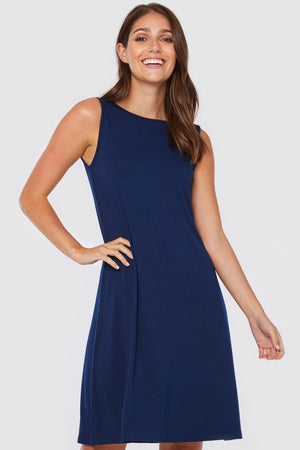 The Adele Dress now in a perfectly chic navy shade. The Adele Dress is an effortless style with a shell neckline and comfortable A-line shape. The navy colour provides confidence and sophistication