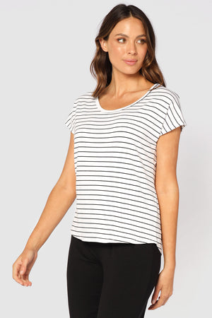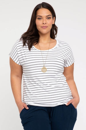 In an organic cotton blend, our Eadie Top is sure to be your everyday go-to in your wardrobe. This tee is a minimalist staple delivered in a roomy regular silhouette. With a soft scoop neck and short sleeve it is a great spring/summer basic tee. Designed with an oversized fit, it is super comfortable and is not firm or clingy on the body.