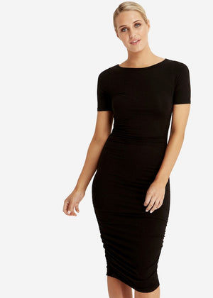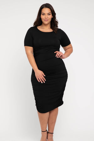 The Jasper Ruched Dress is a classic style, and like all of our ruched style dresses - it loves your curves! Features flattering side ruching, the perfect sleeve length and a simple slightly scooped neckline.