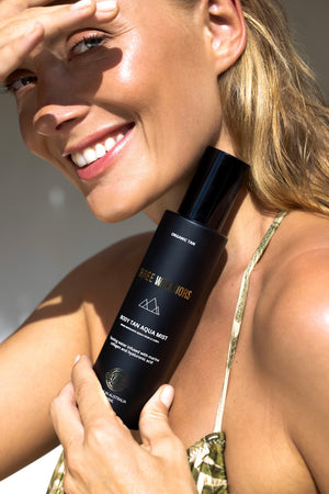 Body Tan Aqua Mist is a certified organic tanning water formulated with Tasmanian Spring Water, Hyaluronic Acid, and Marine Collagen designed to leave the body revitalised and boasting a dewy, natural glow. It's a transparent liquid, so we recommend using our Eco-Friendly Tanning Mitt or a make-up brush for the perfect application.