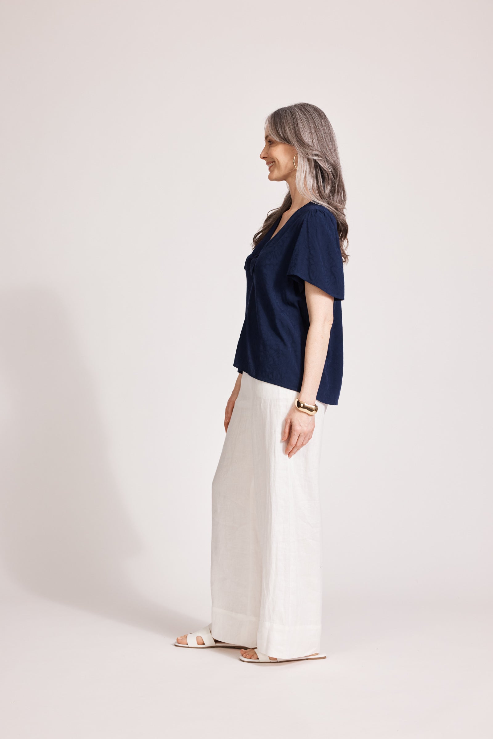 The Parisio Tie Top by Eb&Ive for Spring Summer offers a breezy, lightweight design featuring a flattering V-neck and a stylish tie front. Perfectly versatile, it transitions effortlessly from office wear to weekend outings and special occasions.