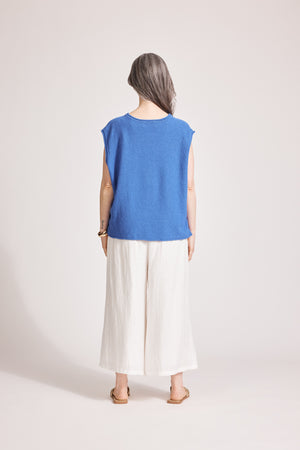 Meet the Artemis sleeveless cotton knit top, designed to upgrade your everyday wardrobe. This beautifully textured knit is perfect for adding effortless style to your spring and summer looks, whether you're on holiday, at work, or enjoying casual chic moments.