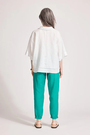 The MiramarCollared Top with its V neck and crop boxy styling is ideal for summer work styling. Crafted from breathable white linen. This elegant piece combines sophistication with the comfort of linen,