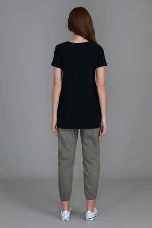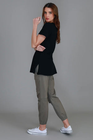 The Frankie Tee is your classic wardrobe staple in a relaxed, boxy silhouette. Our staple t-shirt is made from 100% cotton and features a deep V-neck and split hem detail. We’ll be wearing ours on repeat with jeans or joggers.