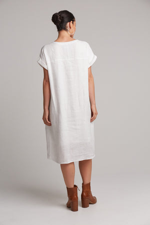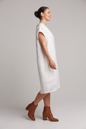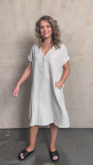 Keeping it simple is our style and this studio linen dress is everything. A deep V and slight Aline shape flattering all body shapes make for easy wear. Our luxe linen fabric is just right for for our summer heat and holidays.