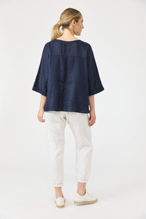 The Studio Relaxed Linen Top is a timeless classic Linen shape that will elevate the simplest of looks. For those that love a sleeve in summer this is for you!