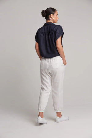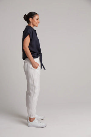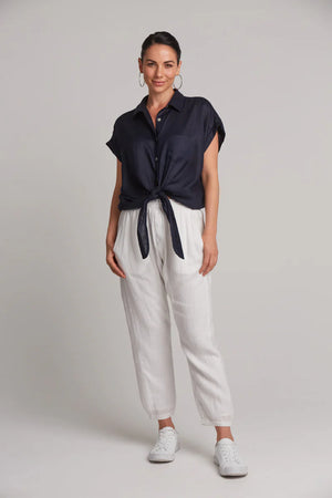 Elevate your style with our Studio Tie Front Linen Shirt in Black. This versatile staple is perfect for both work and casual outings. The tie front detail adds a touch of sophistication, while the lightweight linen fabric keeps you cool and comfortable. Look smart and feel confident in this must-have piece!