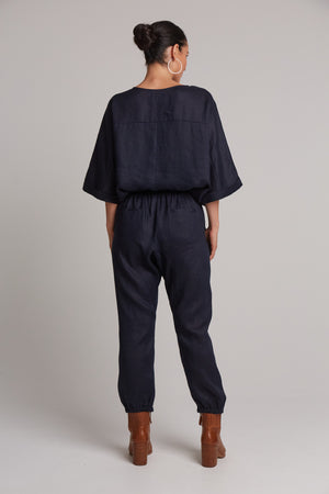 Studio Linen Relaxed Pant - Navy