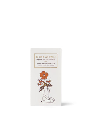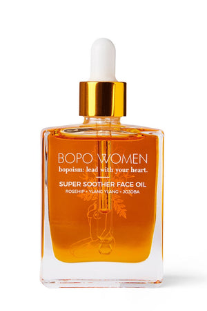 Super Soother is a completely natural face oil created to rehydrate and restore tired and dehydrated skin in need of some loving. Its beautiful orange glow is derived from rosehip, an oil rich in essential fatty acids that hydrates skin while promoting skin cell regeneration. Sweet almond oil and jojoba deeply quench, while lavender detoxifies and ylang ylang balances. Best for dry or combination skin types. Absorbs really quickly and is amazing under make-up.