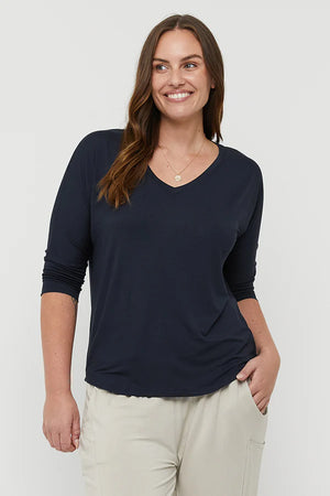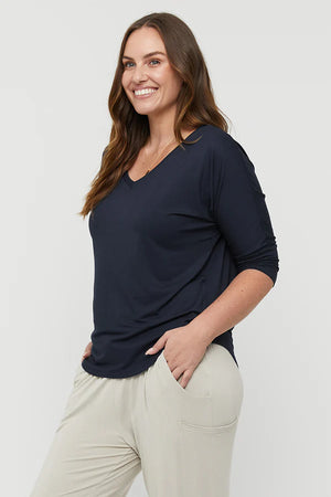 Our Dolman Sleeve Top from Bamboo Body is a favourite here at Fox and Scout, due to its relaxed fit, cuffed sleeve and flattering V-neckline. This is a fashionable yet classic style that is perfect for any time of the year. With a chic V-neck and 3/4 cuffed sleeve for arm coverage, this top has a dolman sleeve and a curved hem to give it a modern twist.