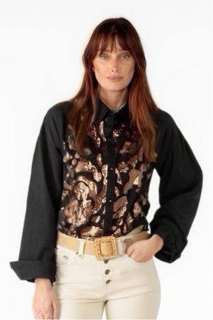 Turn heads and elevate your everyday wardrobe with the stunning Juleas shirt. Crafted from breathable 100% cotton, this timeless piece features a relaxed silhouette that offers comfort without compromising on style. The standout detail? A shimmering rose gold sequin design across the body – subtle, sophisticated, and made to sparkle in all the right ways.