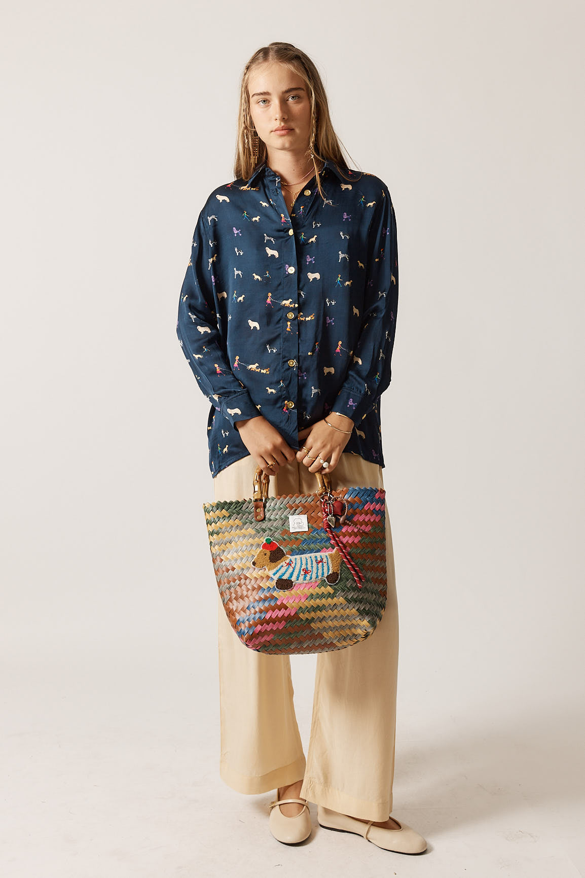 Puppy Love! You bet we absolutely melt for pups! This season, RubyYaya has unleashed a button-up shirt decked out in an adorably chaotic puppy parade. All sorts of furry friends, in sizes galore, prance playfully across this whimsical print!