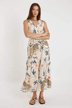 Get ready for some summertime fun with RubyYaya's resort-inspired print in the stunning Celine Dress. Perfect for poolside lounging or beachside strolls, this kaftan will give off serious vacation vibes while keeping you effortlessly stylish and carefree.