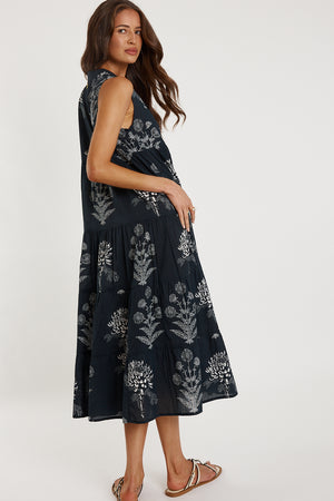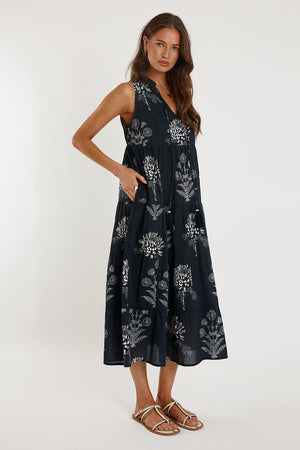 Summer fun with RubyYaya's Waratah print maxi dress! Monochrome twist on black & white classic print. Bold, chic, and comfy.